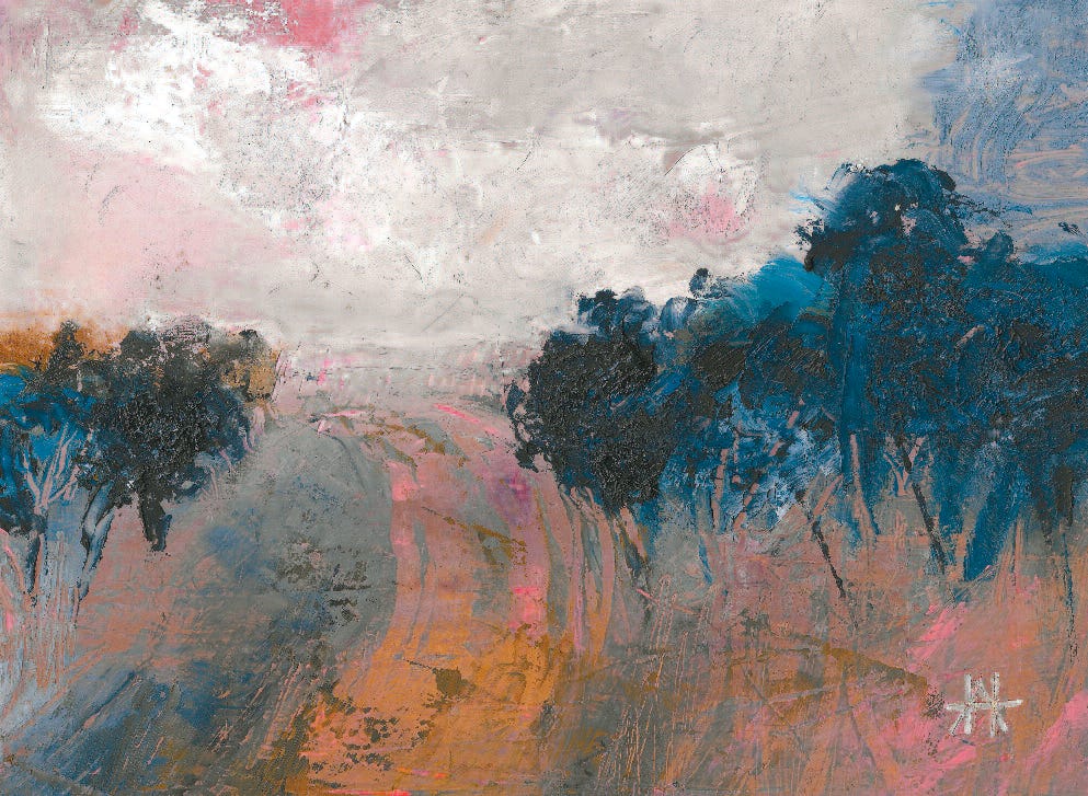 She prompts me to recognise that I have long related to individual plants and particularly trees, as “he/she” rather than it or that, not that I’d voiced this out loud. The trees in my art seem to dance and communicate; I think of them as radiating personality, old wisdom and communal life. In my mind, they are witness to all our antics.